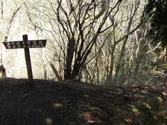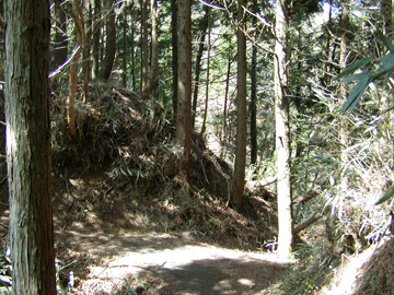 | (06)山伏平の堀切 現在の登山道は蛇行していますが、戦国時代は尾根上の通る道がここで一度途切れる仕組みになっていました。 |