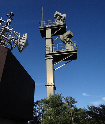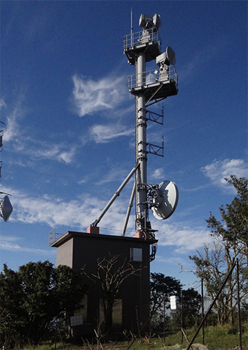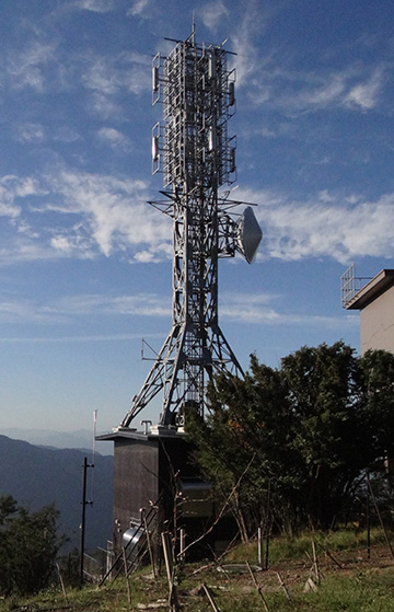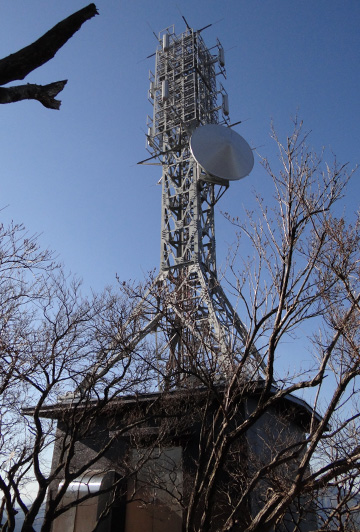 建屋の屋上にある電波塔の他、後に設置されたと思われる独立したパラボラ塔があります。