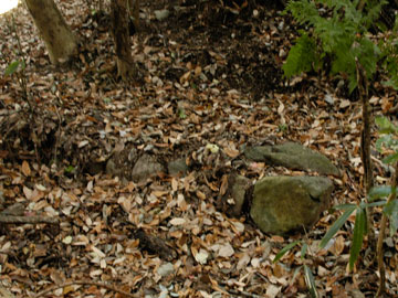 18 石垣 城山に入ると石が点在していて、そういう地質なのかと思っていましたが、これは人為的に組まれた石垣です。 |