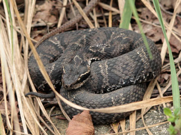 ヤマカガシが逃げていった先には違う色をした蛇が溜まっていました。 |