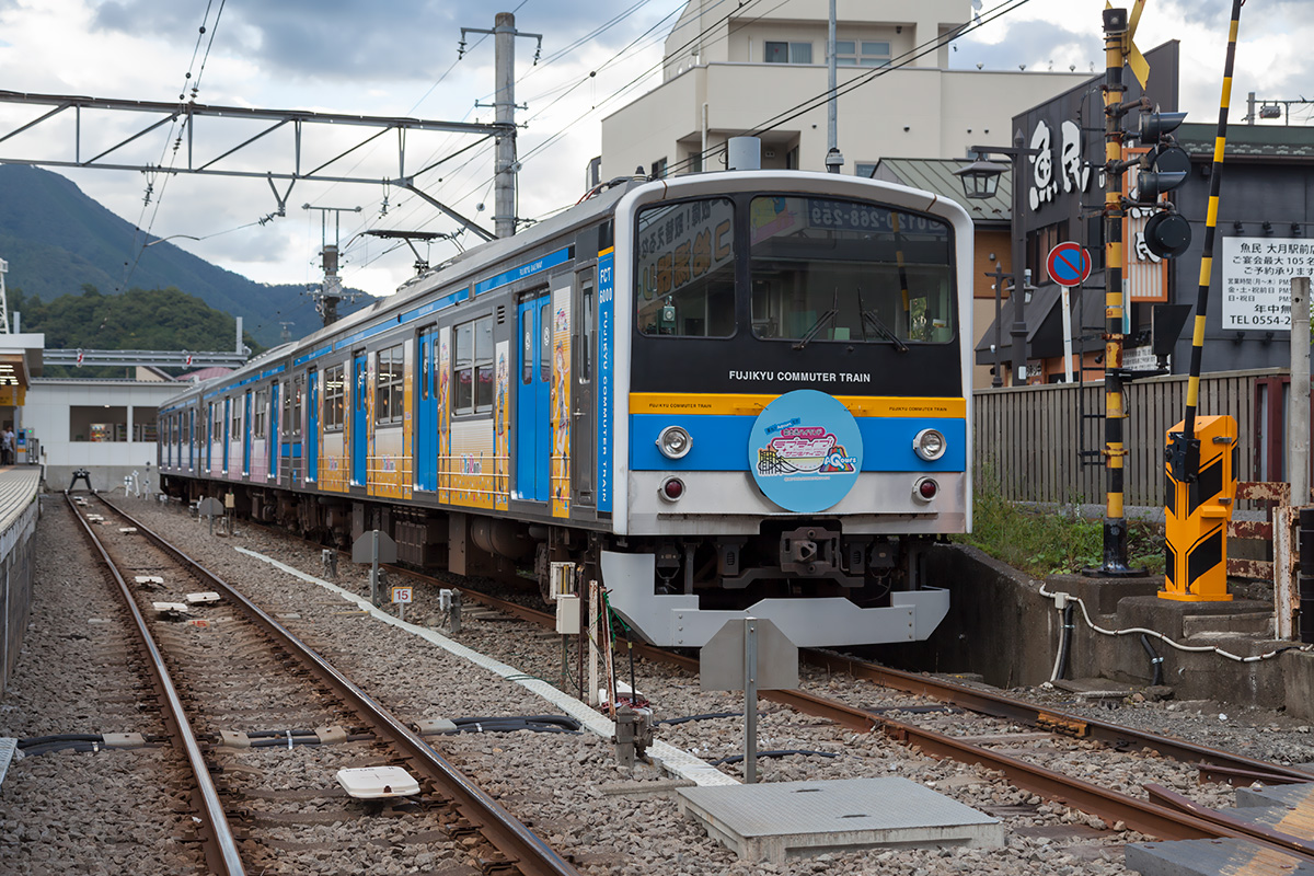 大月駅を訪れたときに、キャラクターが描かれたラッピング電車を見かけた。
