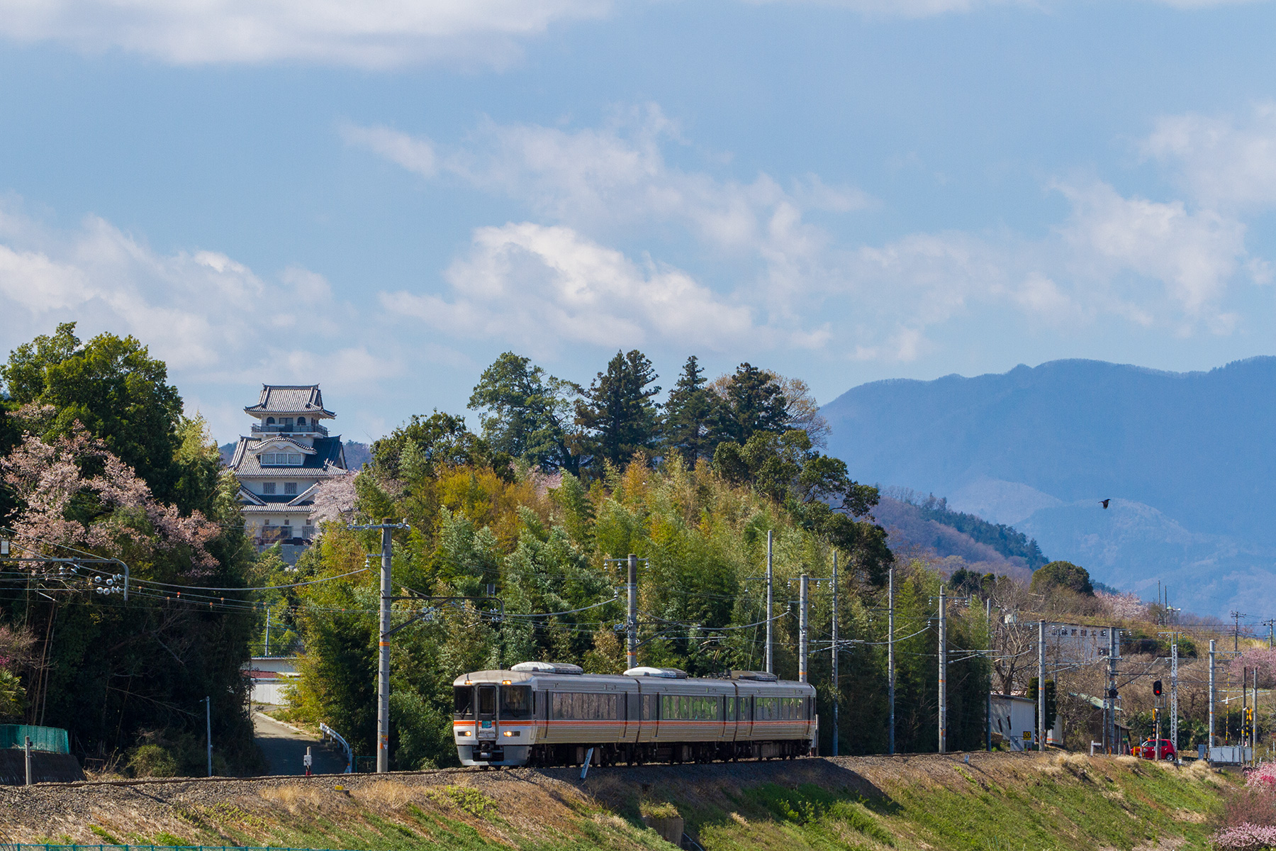 上野城天守と313系