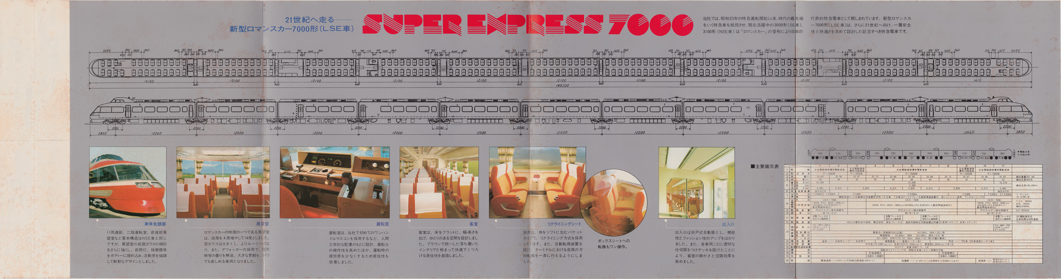 「新型ロマンスカー7000形完成記念乗車券」は昭和55年12月に発売された記念きっぷで、ケースから取り出し、四つ折りの紙面を広げると、長さ70cmあまりという特大サイズが現れた。