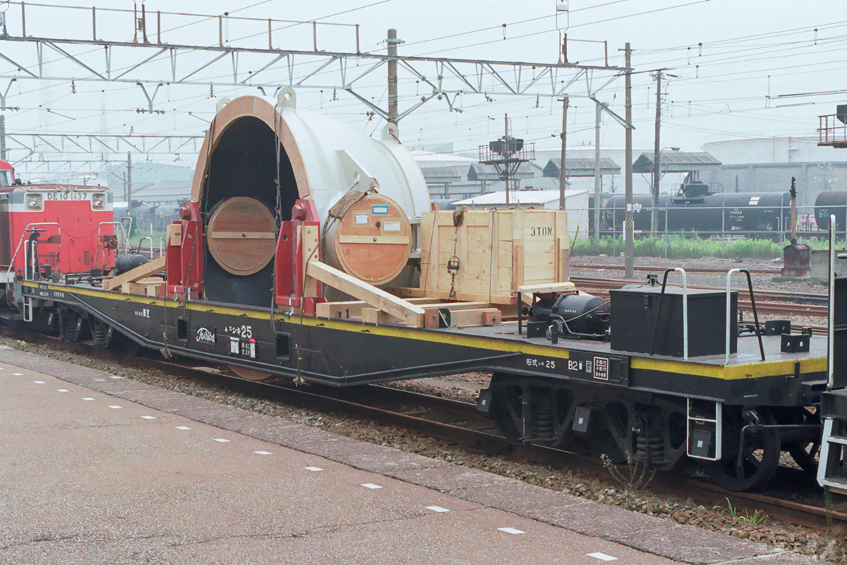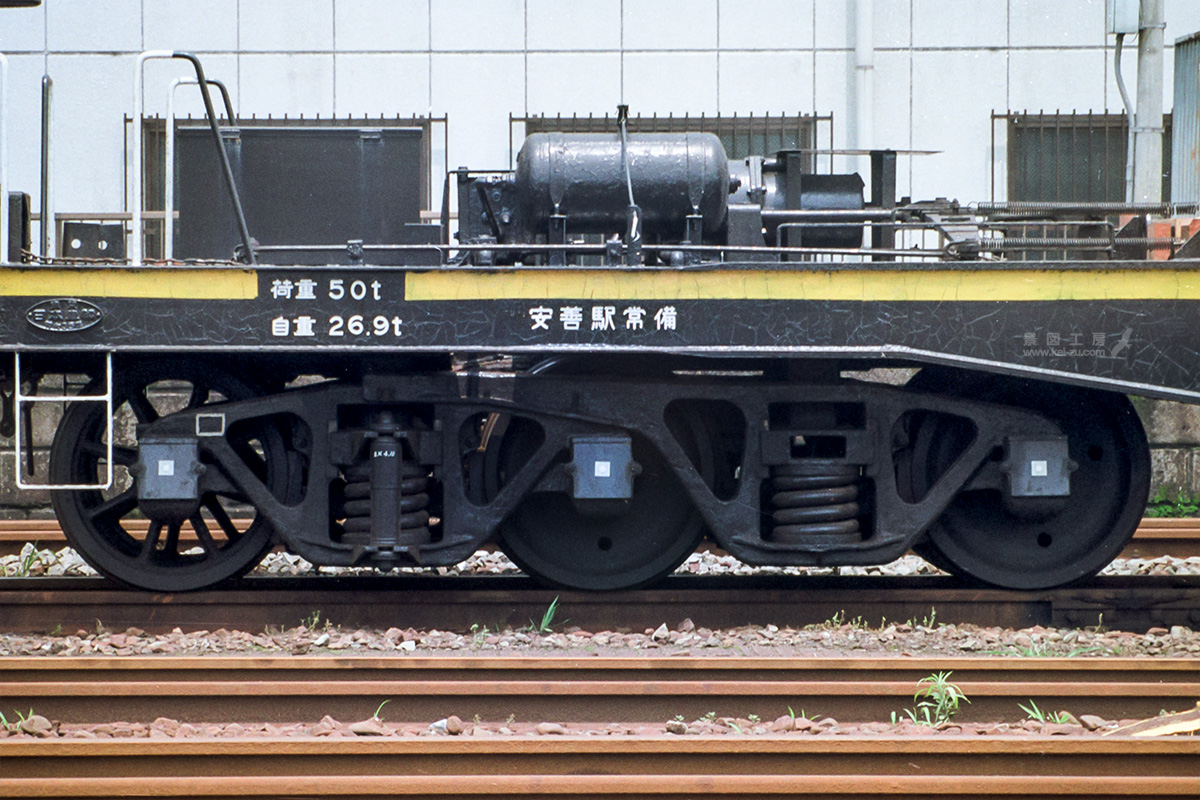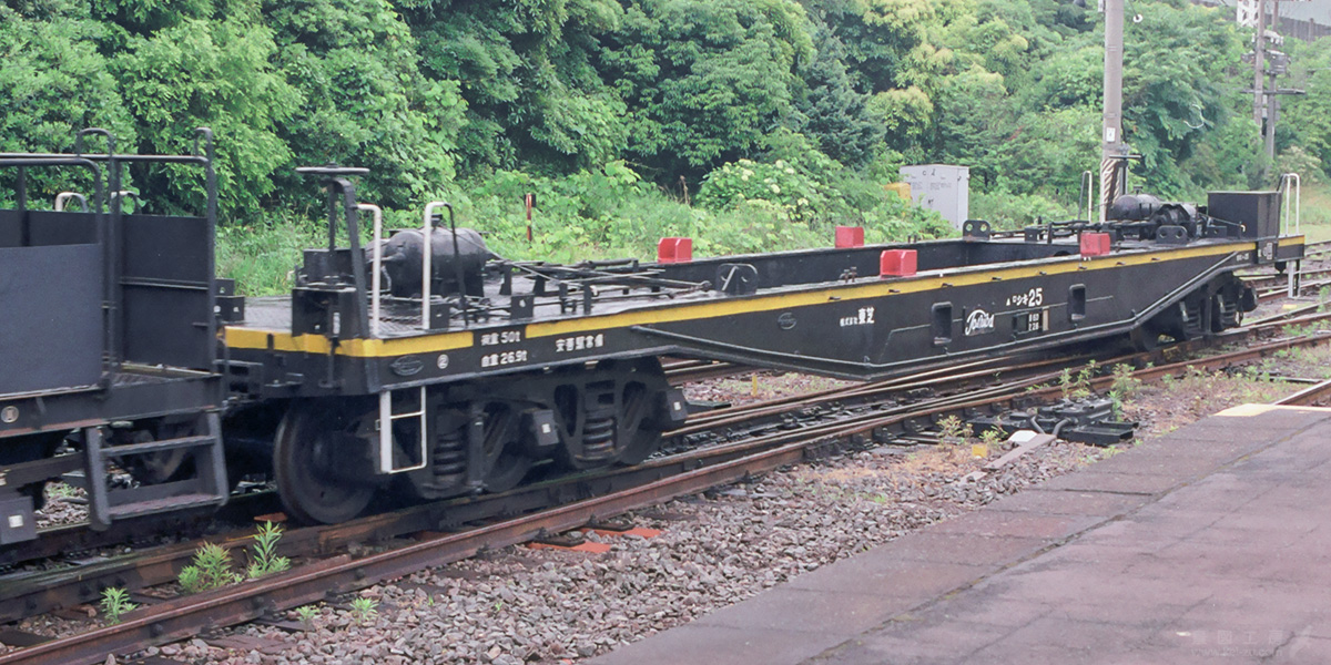 一見、コキのような外観は他の大物車に比べると見劣りするが、詳細に観察していくと様々な発見があり、興味深い車輌と言える。