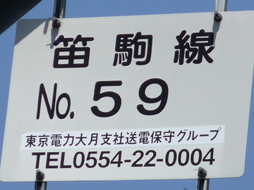 この鉄塔と初鹿野発電所とは直接結ばれており、水力で発電された電力と日川線を昇圧した66kVを笛駒線へ補充しているようです。