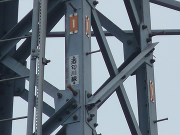 酒匂川線は菅沼発電所を起点とし、新秦野変電所を結んでいます。 1号鉄塔は菅沼発電所構内にあり、竣工年月を刻んだ銘版を撮影することは出来ませんでした。 酒匂川線 No.1全景 上部の回線が酒匂川線 須川線(6kV1回線)を併架 背後の台地は天神原調整池