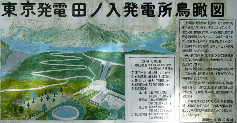 田ノ入発電所は三保ダム直下の左岸に位置します。 神奈川県下の発電所といえば東京電力の管轄と思われがちですが、他にも神奈川県企業庁や電源開発(株)などもあり、東京発電(株)も、然りです。